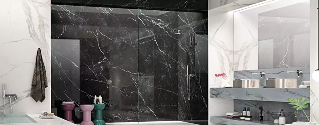 Marquina porcelain is an elegant and striking type of porcelain tile inspired by natural Spanish Nero Marquina marble, featuring thin white veining patterns on a black background. This product, which offers high aesthetics, is especially preferred in luxurious and sophisticated interior designs. Coming with options of glossy or matte surfaces, Marquina porcelain creates a sense of elegance and depth in both floor and wall applications. While providing long-lasting use with its durable structure, it combines the elegance of natural marble with the advantage of easier maintenance.